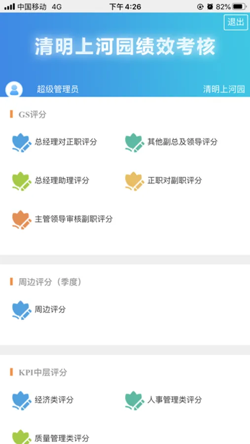 1、提供高层管理人员对中层的考核打分和审核打分功能