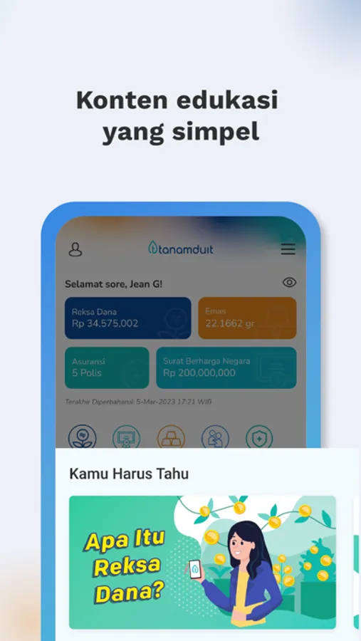 tanamduit adalah aplikasi investasi reksadana, Surat Berharga Negara (SBN), emas dan asuransi. Kamu bisa mulai investasi aman dan praktis sesuai kebutuhan dan tujuan keuangan.