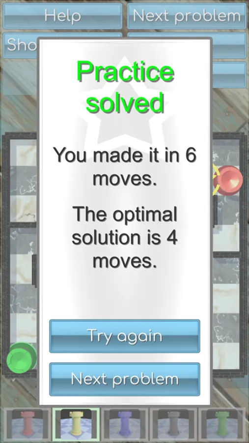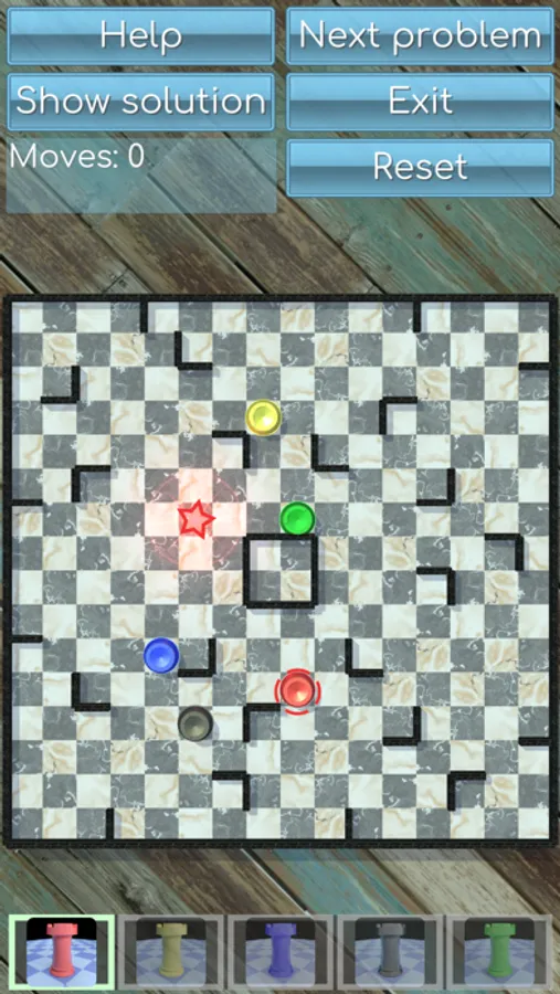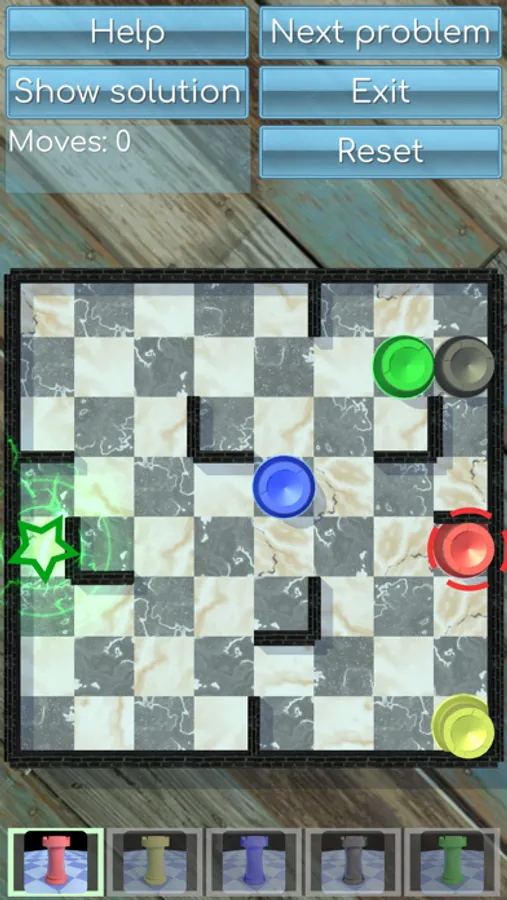 For each problem, try to move the rook with the same color as the target to the target position(rotating star) in as few moves as possible. Play with friends or compete against others in the daily challenges.