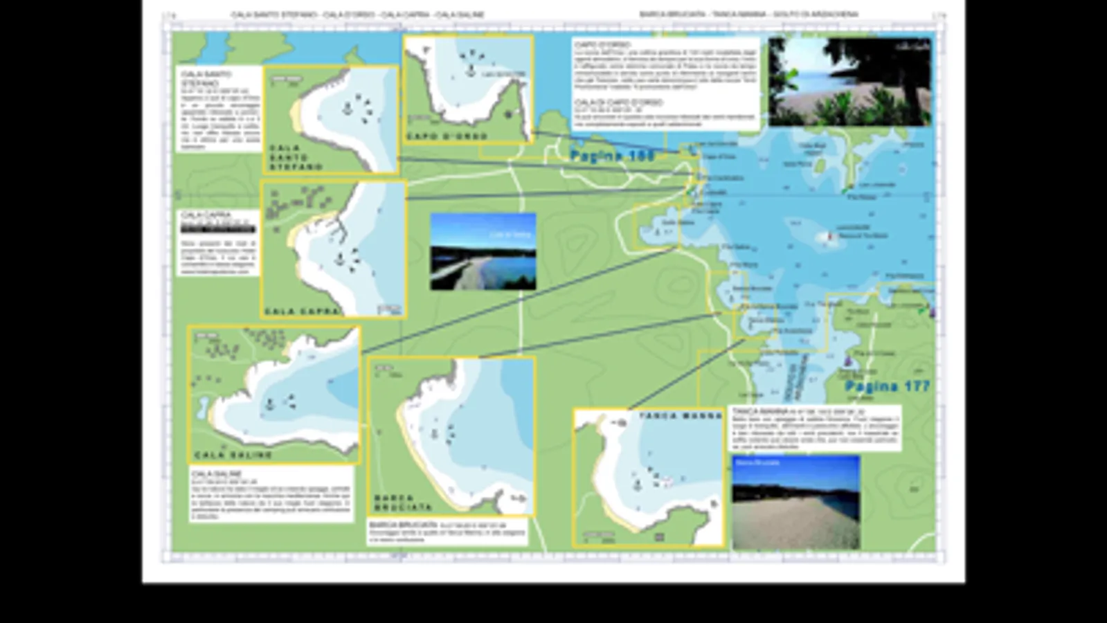 ANCHORAGE AREAS: are described, from those suitable for a brief swimming stop to those that provide good shelter in case of bad weather or to safely anchor overnight. Type of shelter, depths, rocks and the type of bottom are all indicated, together with the prevailing winds and currents, and suggestions regarding points of interest and the landscape.