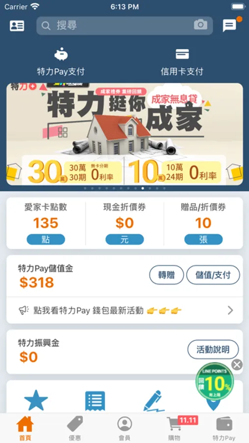 特力愛家卡 APP 整合特力屋、HOLA 和樂家居、hoi! 好好生活等線上購物與會員服務於單一平台,使會員權益更透明、服務更好找。有了特力愛家卡,您可以輕鬆享受: