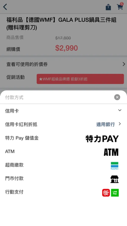 信用卡、ATM 轉帳、超商/門市付款、特力Pay、多元支付(LINE Pay 等)輕鬆支付安全又便利