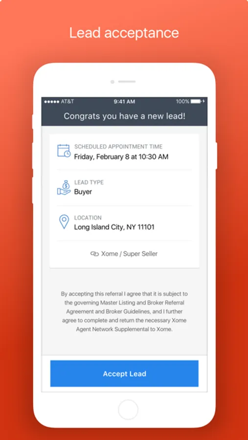 The XomePro mobile app is designed to quickly refer Xome sourced buyers and sellers to the Xome Agent Network. All agents in the Xome Network will use this app to accept the referrals and provide status updates to the Concierge and Agent Relationship Management teams.
