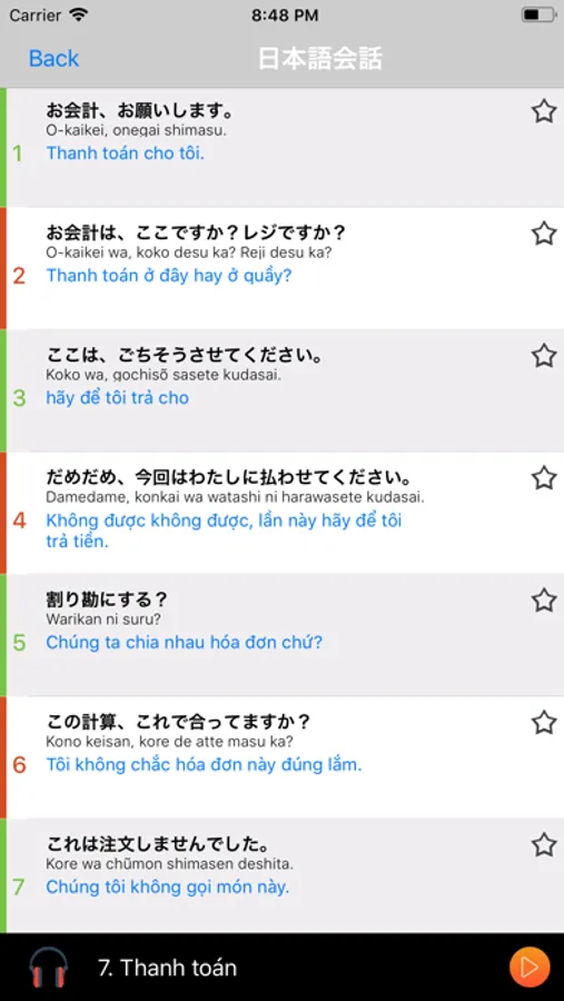 Đặc biệt hơn các bạn có thể học theo từng bài để nâng cao kỹ năng nghe và nói . Với phần âm thanh có thể học offline nâng cao kỹ năng phát âm .