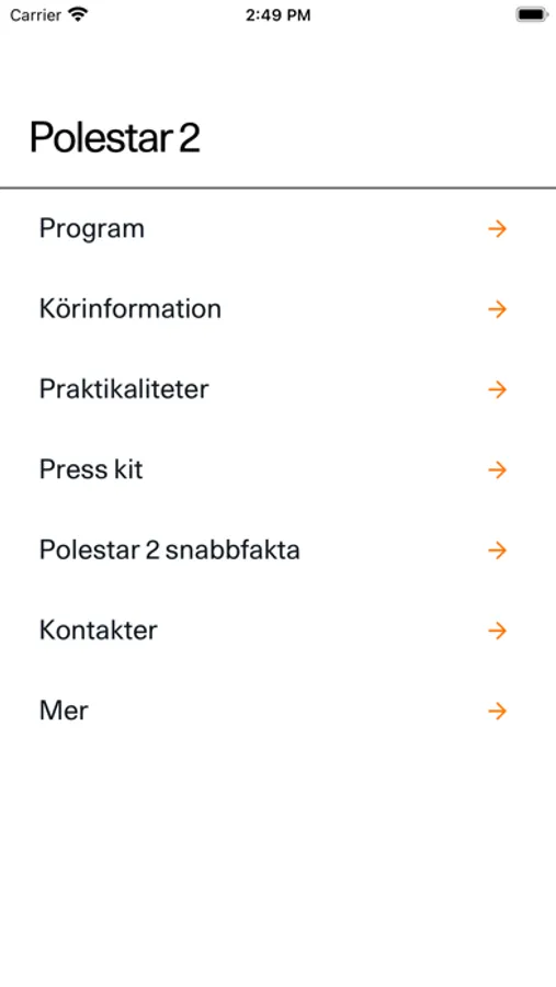 Polestar Drive is the information and communication portal for Polestar event guests – for press, VIP guests, partners and other appointed user groups who have been invited to one of our events. In the app, users will find practical information press kits, news, important links and event schedule updates.
