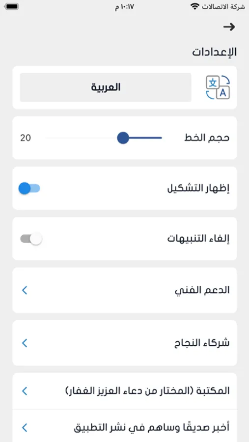 التحكم في نوع الخط وحجمه وتغيير النمط للقراءة الليلية.