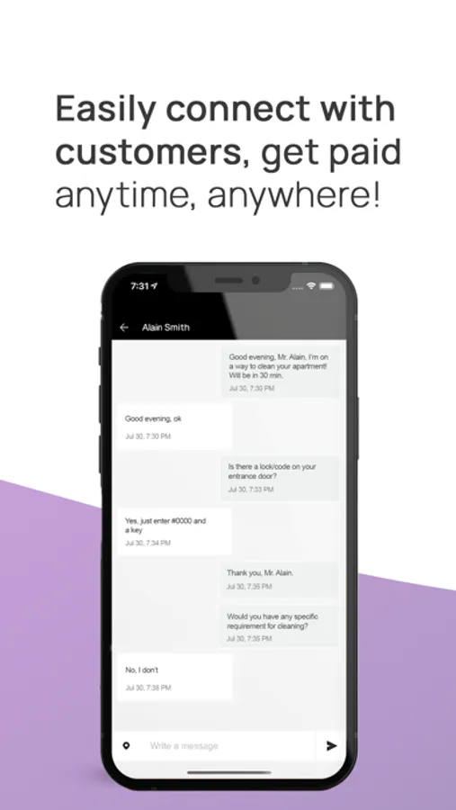 Client Screening – each user looking for a cleaning professional on the app is screened during sign up, and you can see the profiles of each customer.