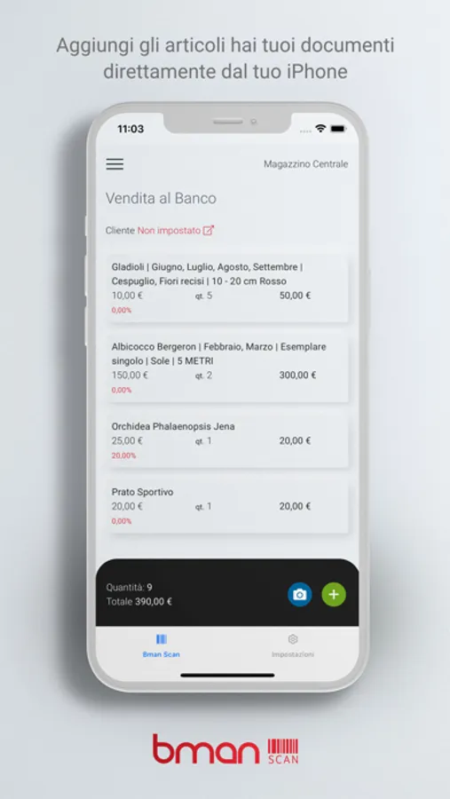 Con Bman SCAN puoi visualizzare i dettagli completi di tutti i tuoi articoli e comporre in mobilità i tuoi documenti direttamente dal tuo dispositivo.
