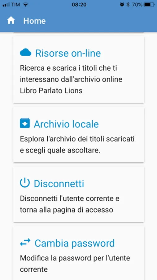 "Libro Parlato Lions", un servizio totalmente gratuito che, da oltre quarant'anni, mette a disposizione di tutti i suoi utenti la propria audiobiblioteca interamente costituita da libri registrati da "viva voce; un Service della grande tradizione dei Lions, i "cavalieri della luce per i non vedenti", come li ha denominati la cieca Helen Keller alla Convention Internazionale dell'Associazione Lions del 1925.