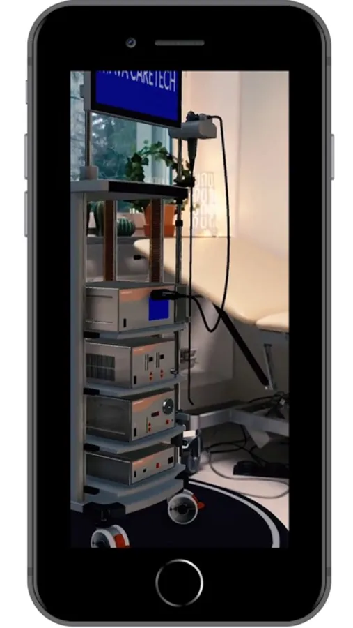 The app itself utilizes the devices camera to capture your real environment and is based on latest Apple ARKit technology to project the virtual object into reality.