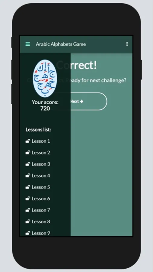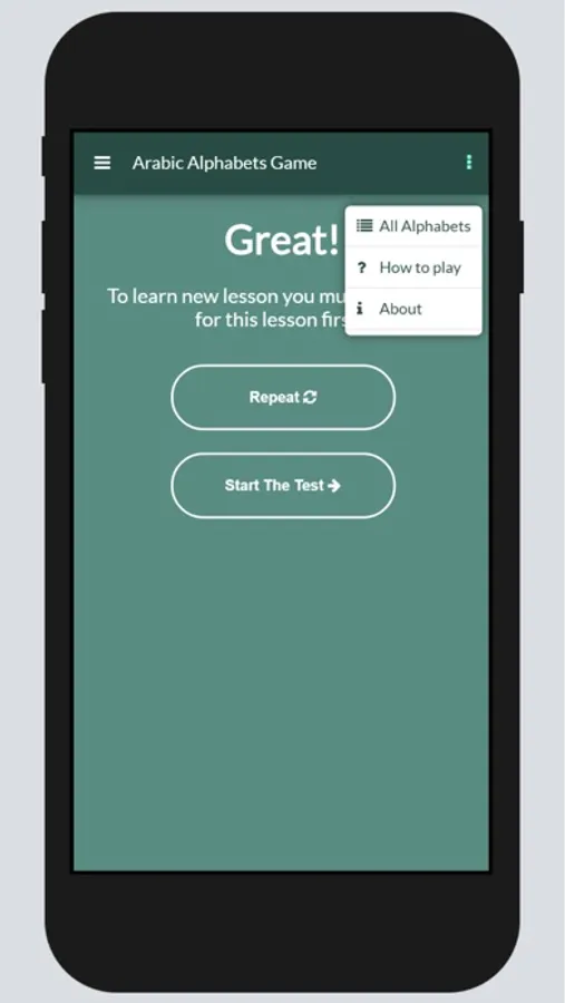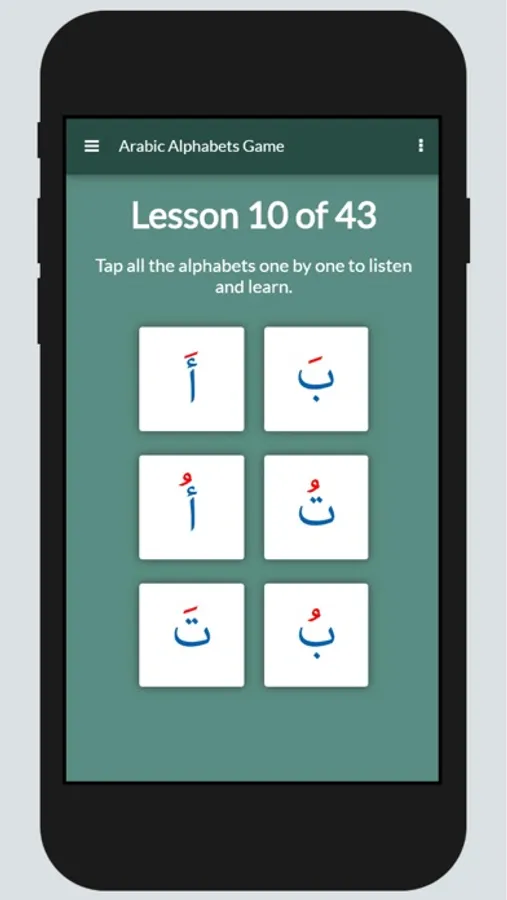 This game has more than 40 levels and in each level/lesson you will learn several Arabic alphabets by listening to it's audio. Then you have to pass each test to unlock the next lesson.
