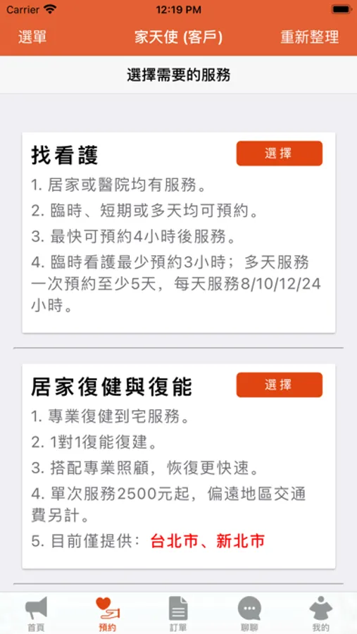 一、臨時看護:最短預約3小時的服務,適合有陪同就醫、臨時照顧、餐食照顧等需求。