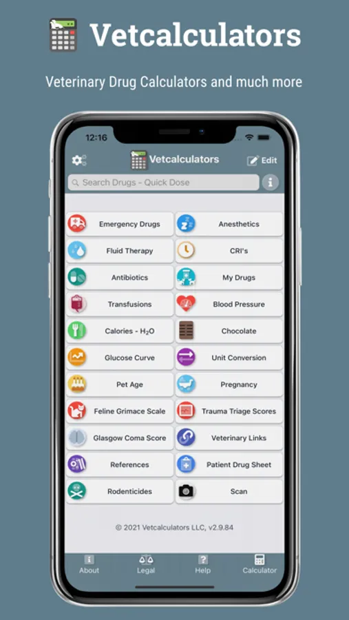 Designed for Veterinarians by a Veterinarian, Vetcalculators is a valuable resource for all veterinarians, veterinary technicians, nurses, and staff. It can be used to calculate a variety of veterinary drug dosages, medical calculations, and measurements quickly and easily. The app also includes a variety of veterinary medical references.