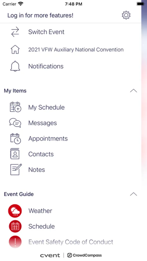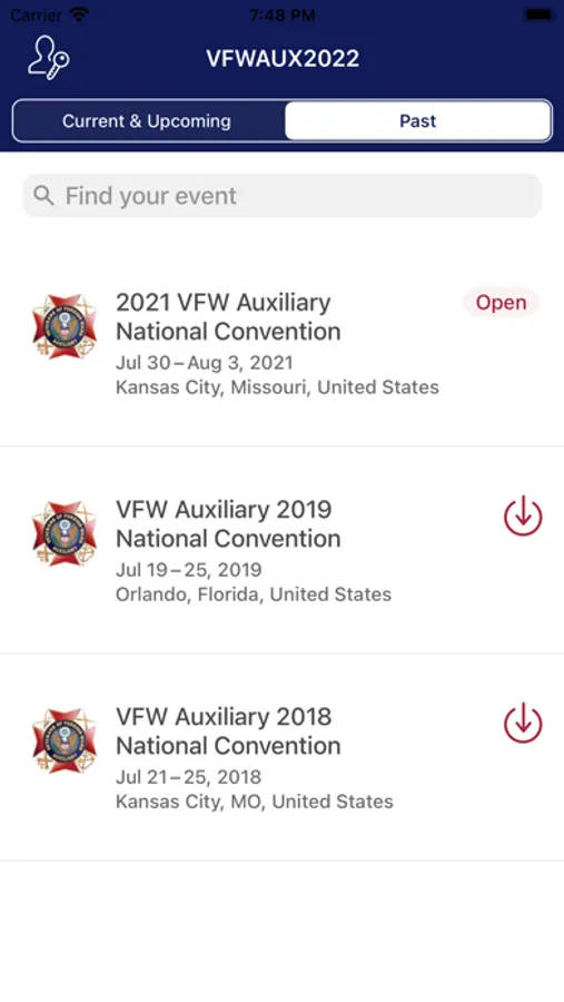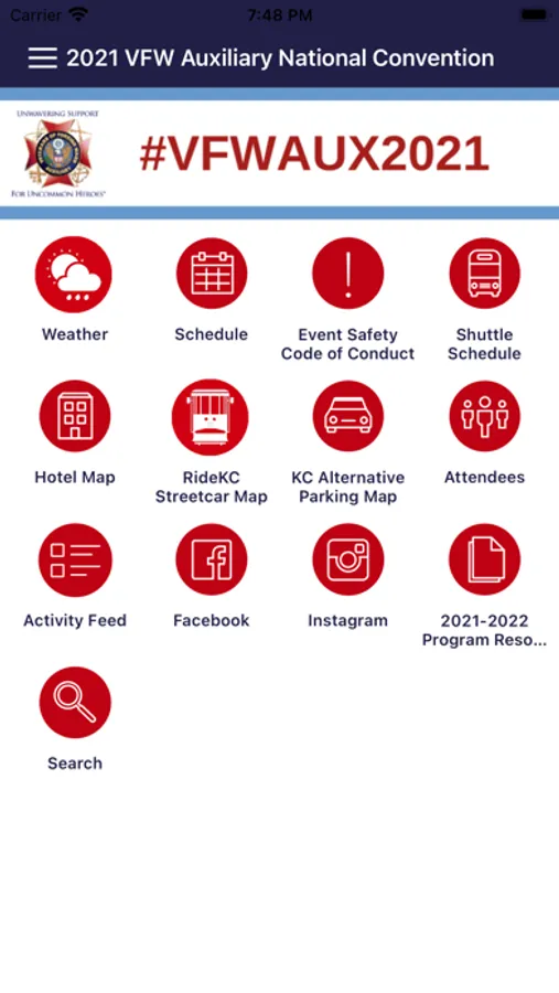 The VFW Auxiliary National Convention app allows attendees to receive important notifications and reminders throughout National Convention in Kansas City. Users will have instant access to the daily agenda, have the ability to add new activities to their personal schedule and connect with other attendees.