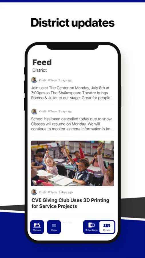 In the Live Feed is where you’ll find updates from the administration about what’s going on in the district right now. Whether that’s celebrating a student’s success, or reminding you about an upcoming deadline.