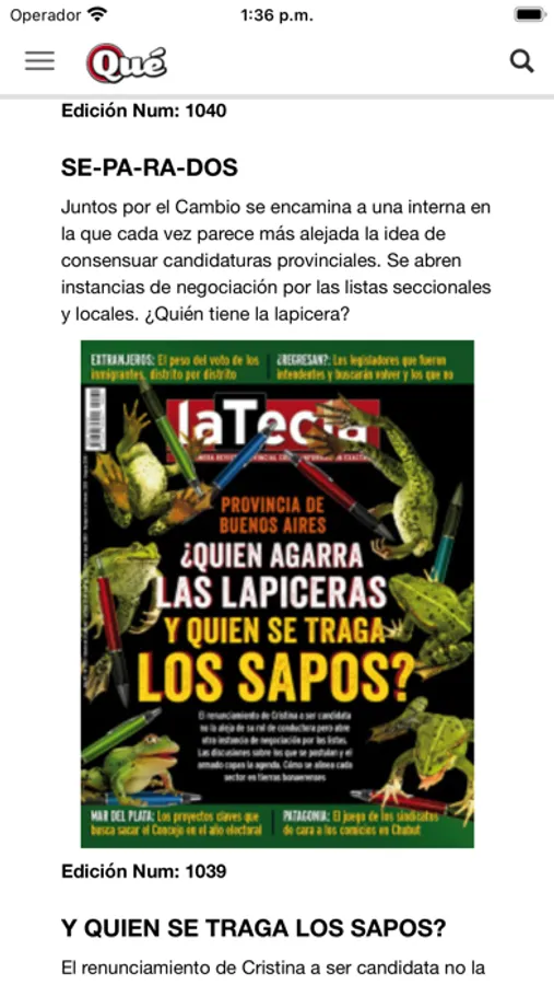 Ya podes leer nuestras notas de Política, Comuna, Legislatura y Sociales.