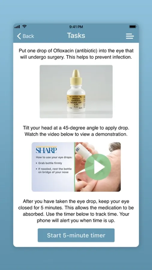 • Receive timely post-surgery eye medication reminders on your phone