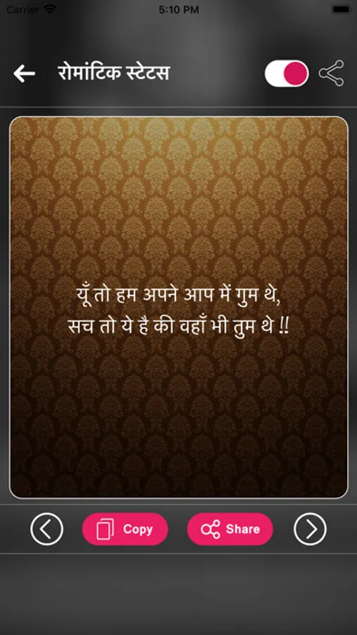 ► Copy Status Text as well Share Status Text to your Facebook / Twitter / WhatsApp /Instagram etc account.