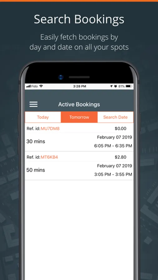 CityParking Mobile attendant app helps you verify and take actions on active and past bookings.