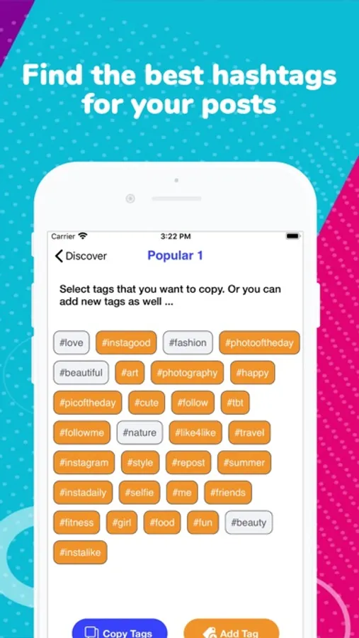 Copy and paste Instagram tags & captions to get more Instagram like your photos and Instagram followers! You can select the Instagram tag & caption individually by category, and you can also be prepared for the list of Instagram tags that we have built for you. You can also set up your own list of Instagram tags & captions.