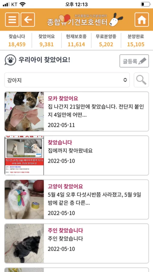 종합유기견보호센터에 실종공고를 올리시면 찾을 확률이 매우 높아집니다. (실종동물 찾았어요 후기 쇄도!!)