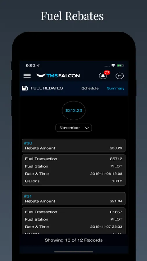 Fuel Rebates: see all your fuel rebates and balances the very next day.