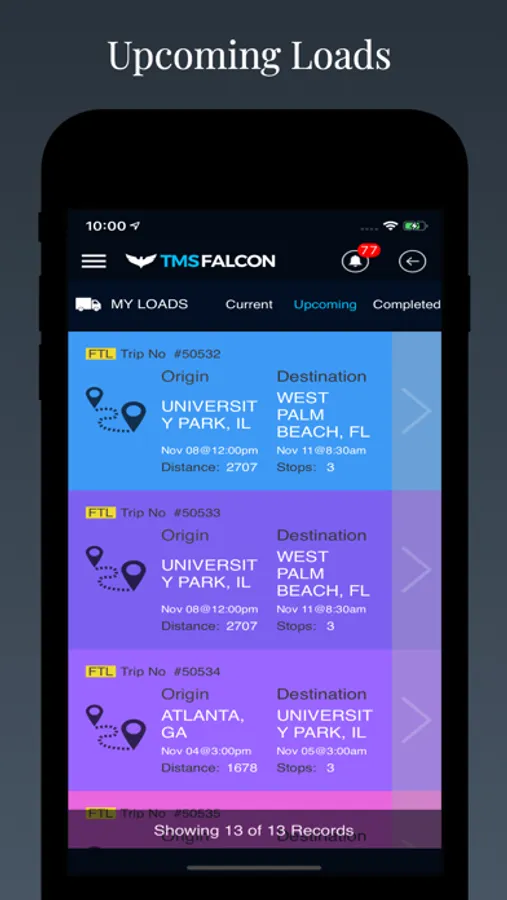 Load preview: drivers can preview all their loads and have access to all of its respective information without having to call dispatch or the customer.