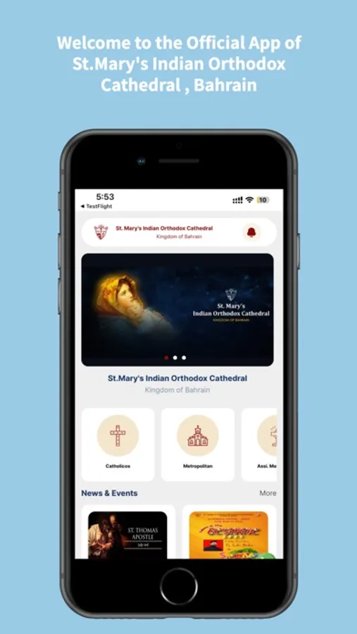Official mobile application for St. Mary's Indian Orthodox Cathedral,Bahrain, This application serves to be an information center providing all related information to the parish at the touch of their fingertips.