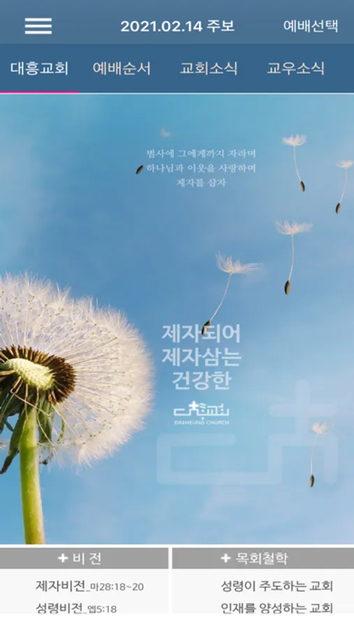 대흥교회 성도님들이 자신의 스마트폰에 본 앱을 설치하시면 매주 대흥교회 주보를 편리하게