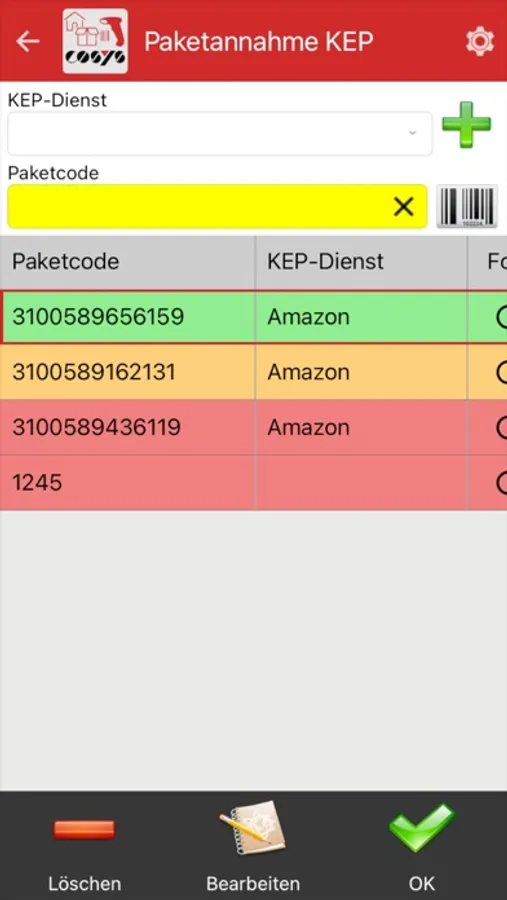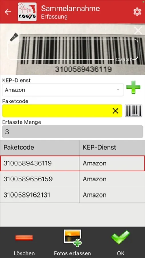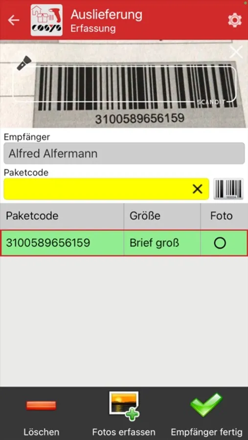 • Erfassung von Paketen, Sendungen und Briefen per Barcodescan