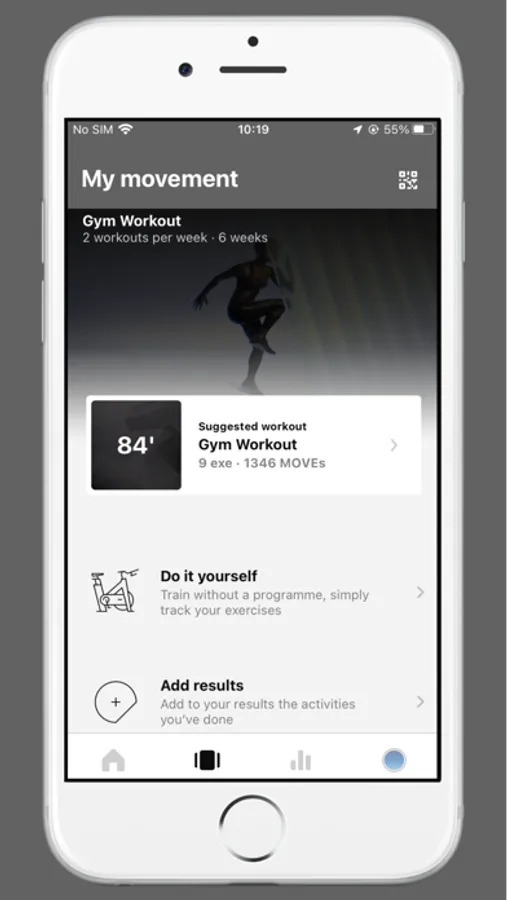 Guía de entrenamiento. Elige fácilmente el entrenamiento que deseas hacer hoy en “mi movimiento” y deja que la aplicación te guíe a través del entrenamiento: la aplicación se mueve automáticamente al siguiente ejercicio y te da la posibilidad de calificar tu experiencia y programar tu próximo entrenamiento.