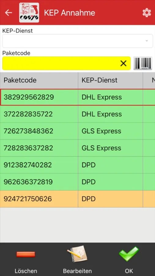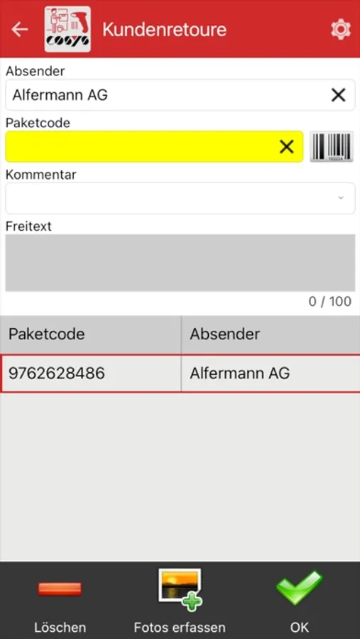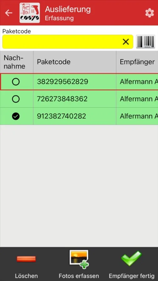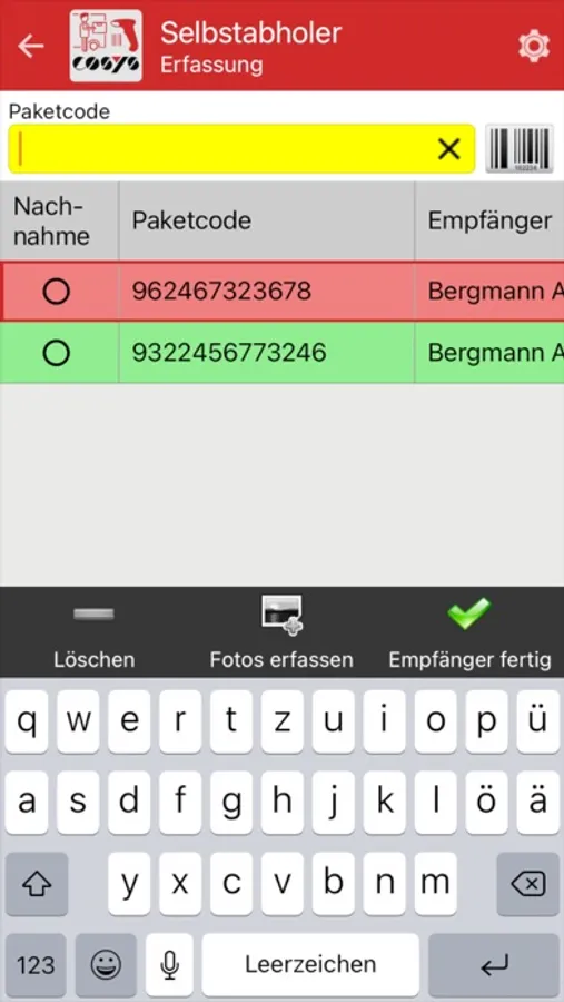 • Erfassung von Paketen, Sendungen und Briefen per Barcodescan