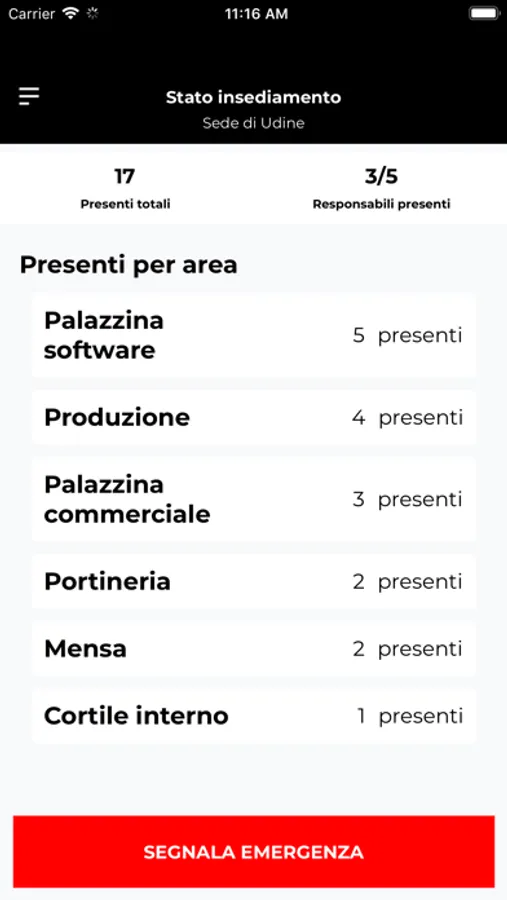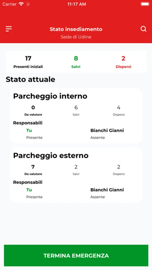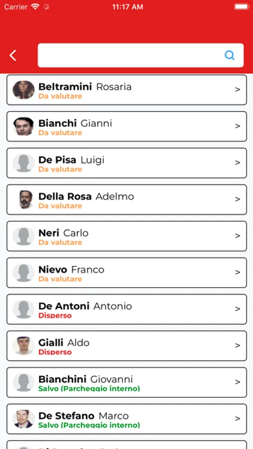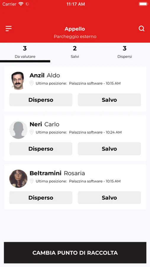 Il responsabile del punto di raccolta, grazie al supporto di Escape, verifica la presenza delle persone evacuate identificandole in base al nominativo oppure tramite la foto. I dati di appello vengono sincronizzati in tempo reale fra i vari dispositivi abilitati, permettendo di avere sempre sempre sotto controllo la lista delle persone non rilevate.