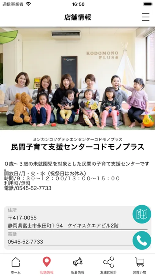 アプリを通してコドモノプラスから、富士市の子育てに関する情報をリアルタイムで受け取ることができます。