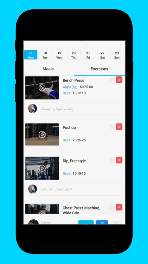 اشتغلنا وبنينا منصة موحدة تشمل التمارين والوجبات اللي بتصممها لمتدربك. اهتمينا ان المكتبة تكون شاملة لكل الاشياء اللي ممكن تحتاجها في خطتك مع متدربينك.