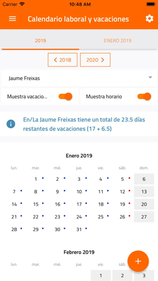 El trabajador dispone de su calendario laboral donde quedan registradas las vacaciones, los días de permiso y el horario laboral. Puede solicitar los días de vacaciones y se le informa de los que dispone.