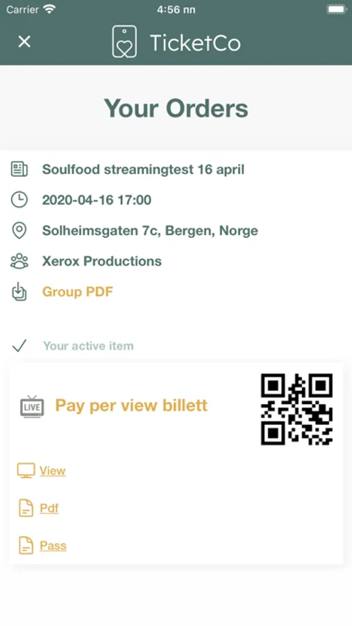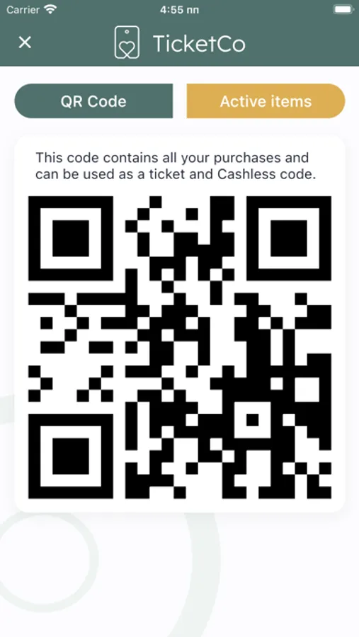 Show your QR-code when you are asked to present your ticket or you want to receive purchased goods at events where TicketCo’s cashless solution is in use.