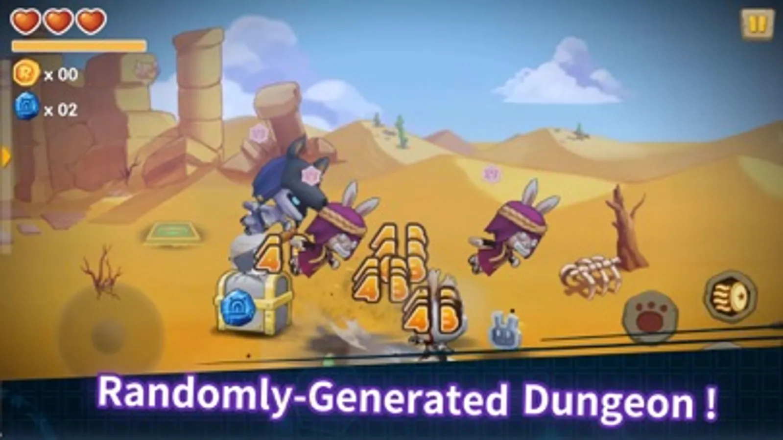 * Randomly-generated dungeon world with new experience every time.
