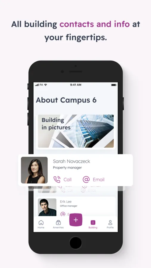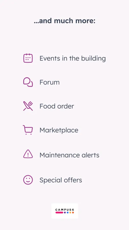 This application is intended not only for employees that work in Campus 6 but for their visitors as well. Important information about the building is organized on the dashboard, which dynamically changes throughout the day. The app offers more functionality including forums, ability to request maintenance, events, information about companies in the building and about the building itself where you can find important contact, guides and documents.