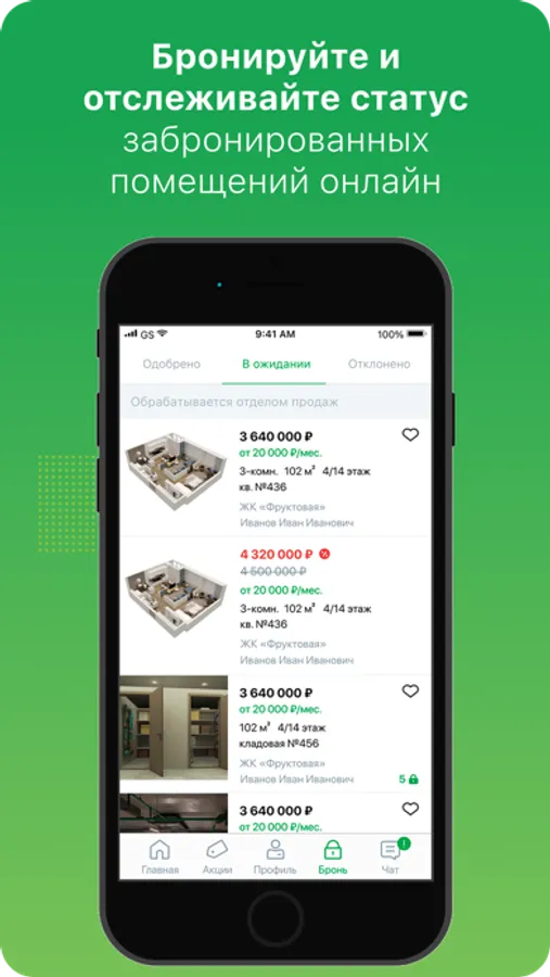 — бронируйте недвижимость и получайте оперативный ответ о статусе брони.
