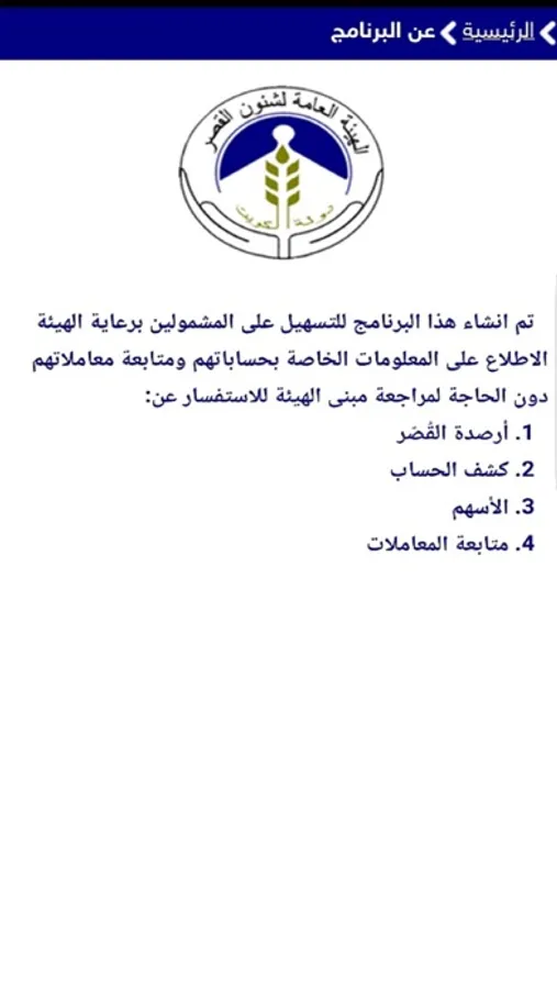 تم إنشاء هذا البرنامج للتسهيل على المشمولين برعاية الهيئة الإطلاع على المعلومات الخاصة بحساباتهم ومتابعة معاملاتهم دون الحاجة لمراجعة مبنى الهيئة للاستفسار عن