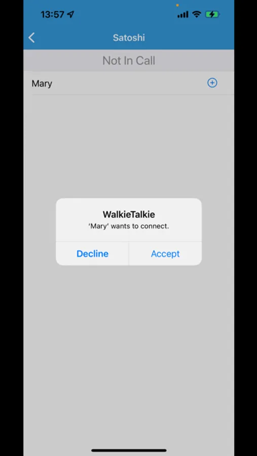 This app is a walkie-talkie app. You can make calls even without an internet connection. Use it by bringing your iPhone close with Bluetooth and Wi-Fi turned on.
