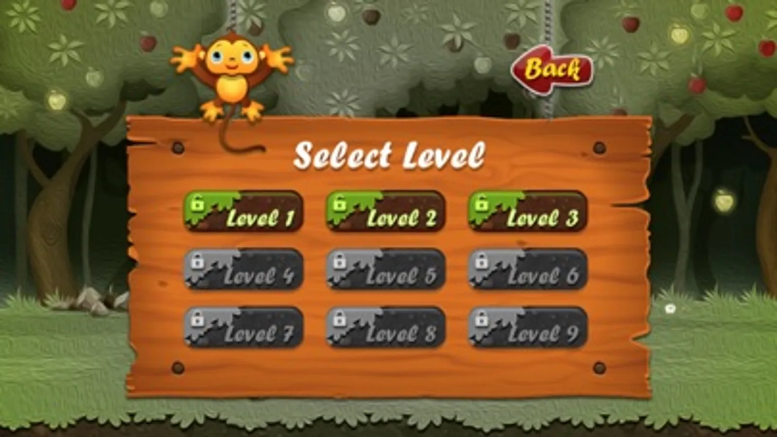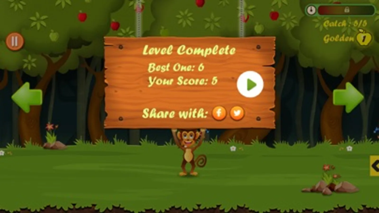 To start with, the monkey has two lives which increase with the levels and a life key can be achieved by catching three consecutive golden apples. The life key can also be preserved and used in the next levels if a player manages to complete a level with the default life setting and within the time frame (from level 4 and onwards).