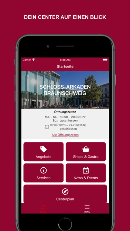 • Der interaktive Centerplan hilft Ihnen beim Finden der Shops und Gastrobetriebe im Center und zeigt Ihnen auch gleich alle Öffnungszeiten und Kontaktdaten auf einen Klick.