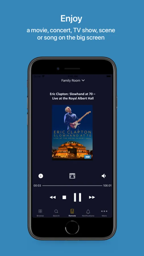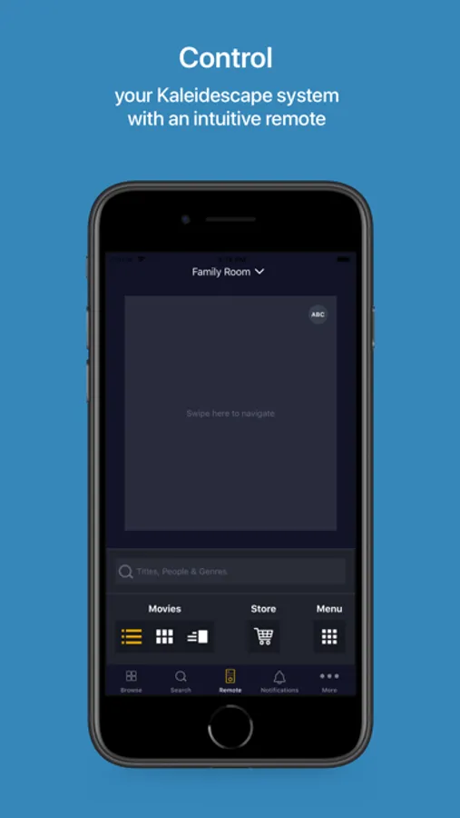 • Control your Kaleidescape player with an innovative and intuitive in-app remote