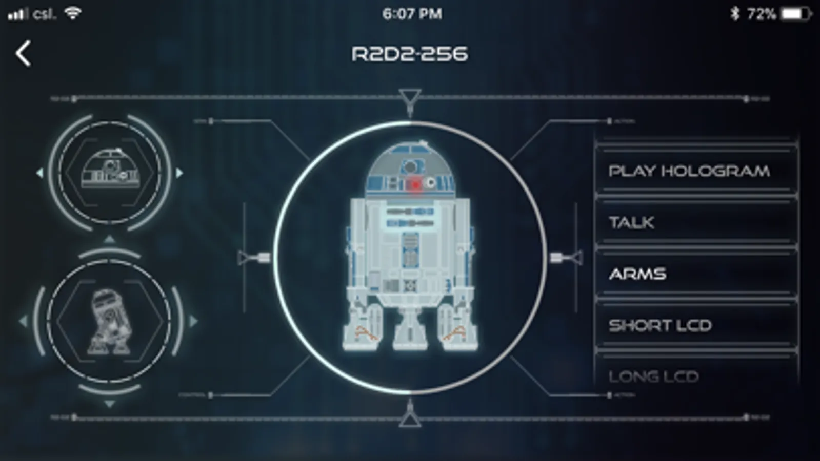 With the ‘Build R2-D2’ App you can control your interactive droid directly from your smartphone or tablet. Steer him at will, see what he sees, and activate all his special features!