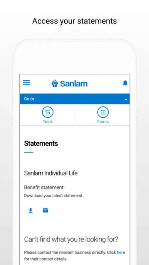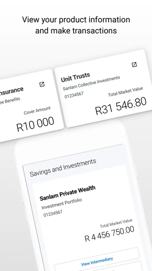 Set up a pin or enable fingerprint ID for the app and rapidly sign in on your next visit. Securely access your portfolio of Sanlam products and engage with the individual business units to view detailed information and transact online.