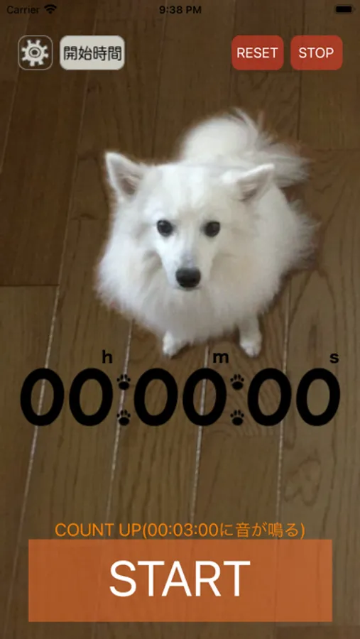 1、[設定](歯車)ボタンを押してスイッチを「カウントアップ」にします。