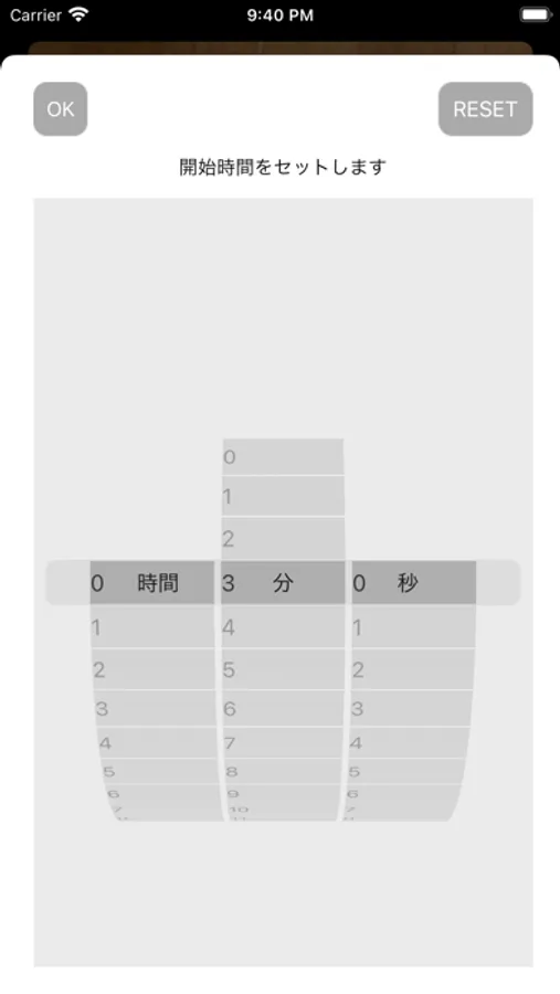 タイマーがストップし「開始時間」で設定した時間に戻ります。
