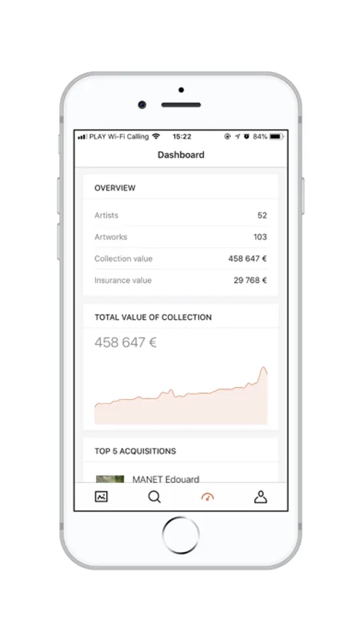 Arteïa App facilitates collection management by allowing collectors to easily access and update their art pieces, while monitoring the value of their collection via a financial dashboard.